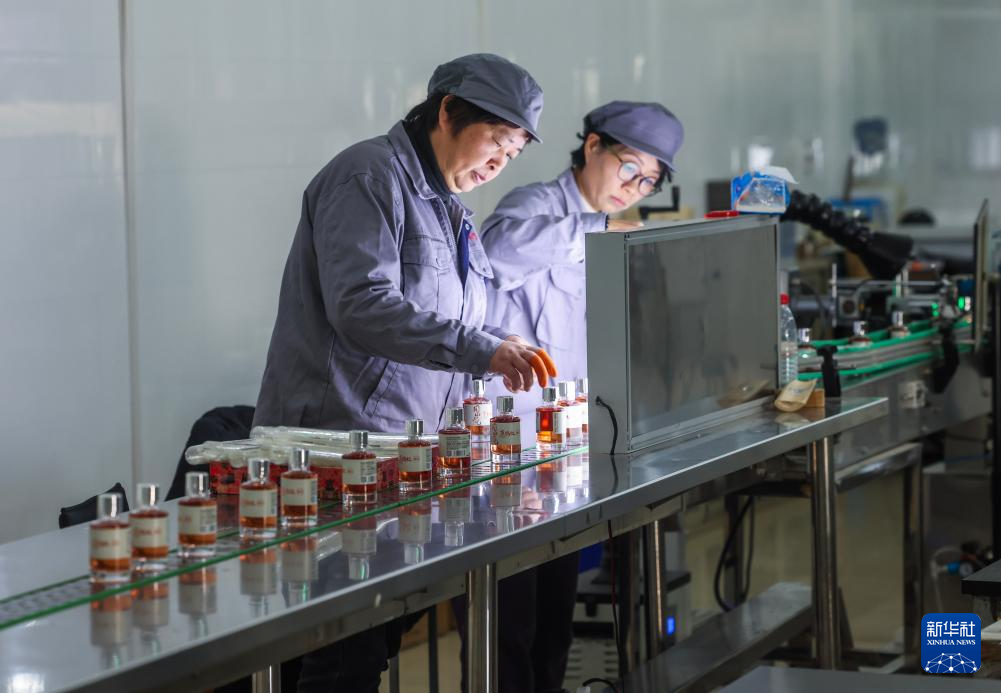 12月19日,在位于同山镇的浙江原锅酒业有限公司包装车间,工作人员在流水线上检验产品。